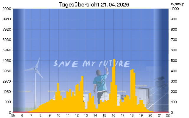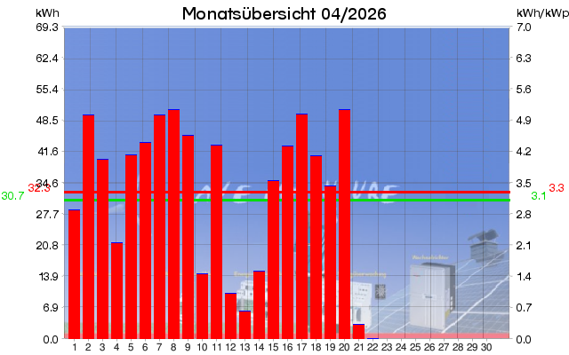 Tagesertrag: 3069 Wh (0.31 kWh/kWp)