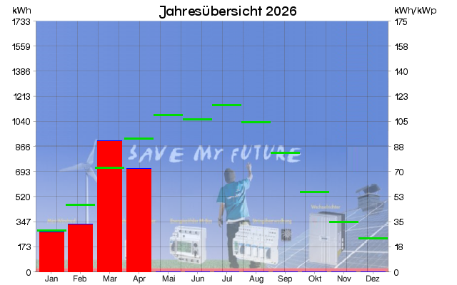 Monatsertrag: 711.5 kWh (71.9 kWh/kWp)